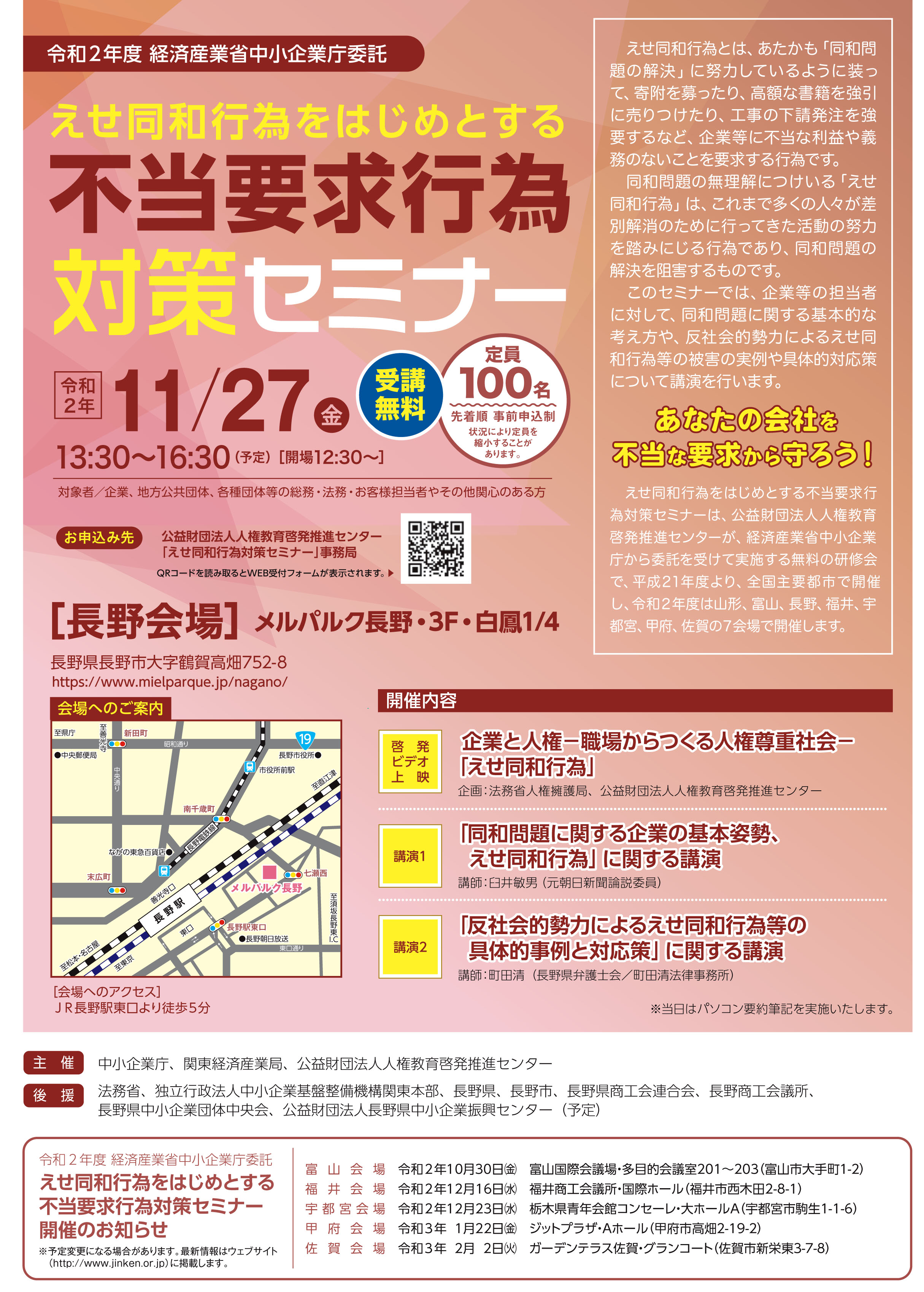 「えせ同和行為をはじめとする不当要求行為対策セミナー・長野会場」開催の御案内